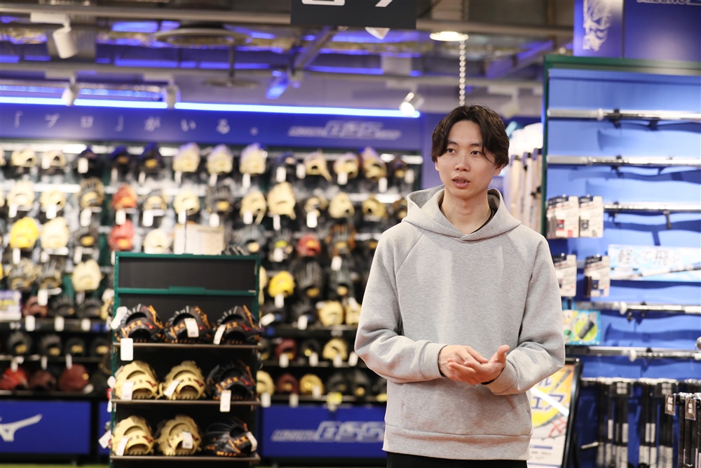 「野球アドバイザー」として、野球用品の接客販売、修理加工、商品管理を担当しています。また、接客販売以外にも、買い回りしやすく選びやすい、思わず手に取りたくなるような売場づくりも手掛けています。